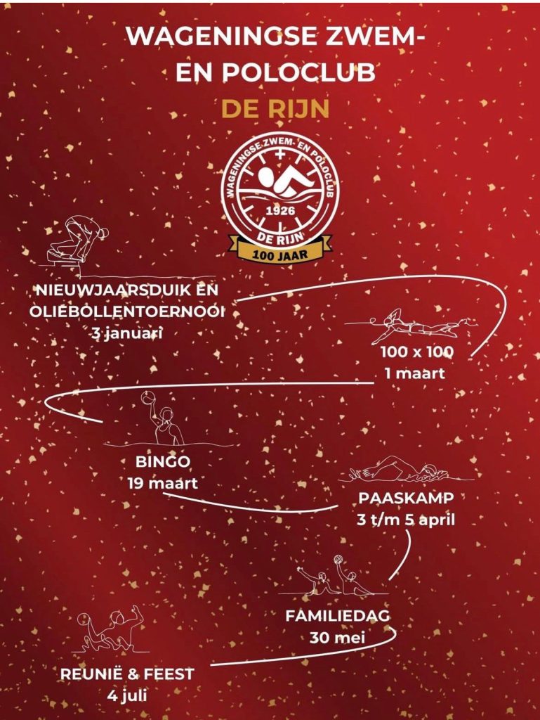 In 1926 werd Wageningse Zwem- en Poloclub De Rijn opgericht. Wat begon als een kleine vereniging groeide uit tot een club waar zwemmen, waterpolo en vriendschap al 100 jaar centraal staan. Generaties sporters vonden bij De Rijn hun plek: in het water, langs de badrand en daarbuiten.